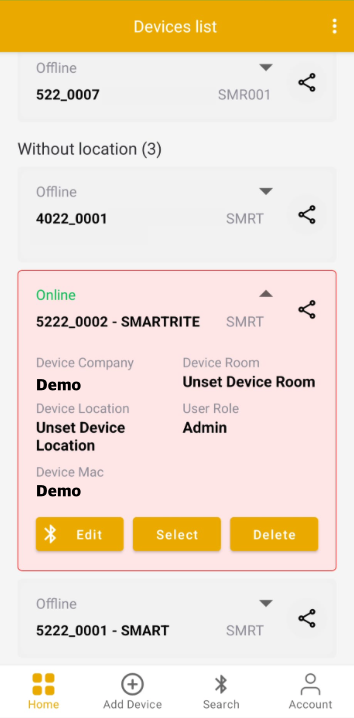 07. Expand device card by pressing on each device card symbol